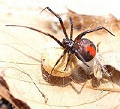 体長約10〜15mm。 全体に黒く背中に赤い模様がある。毒を持っているが攻撃性はなく、日当たりの良い乾燥している場所に多い。2006年5月24日 泉佐野市